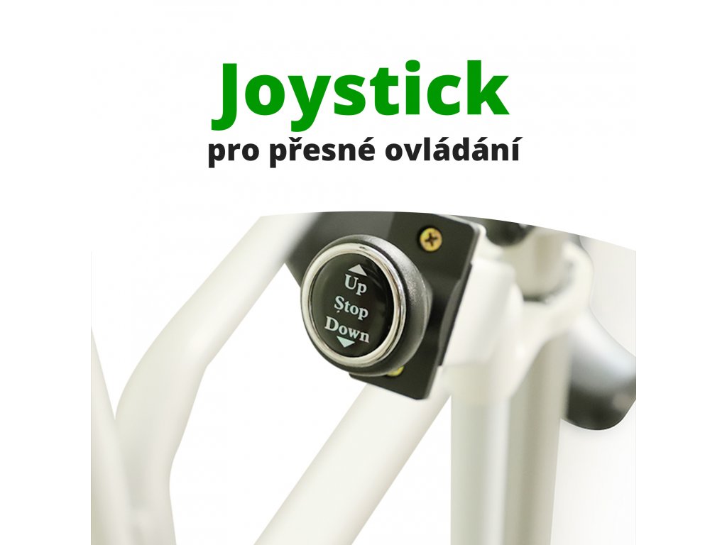 - Jakmile je pacient usazen, může pečovatel pomocí joysticku ovládat pohyb křesla a vést pacienta na požadované místo